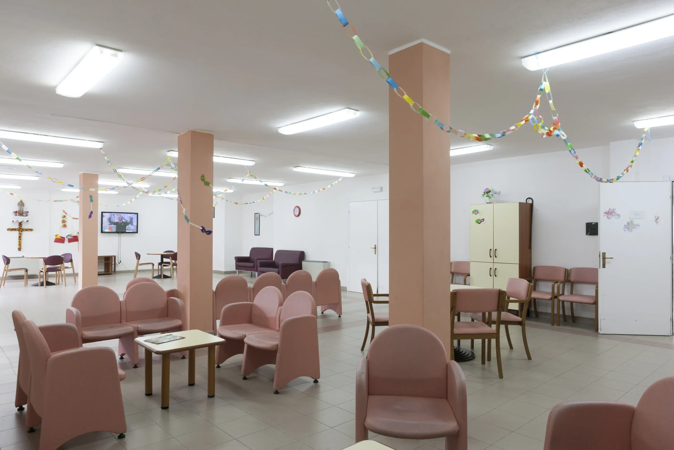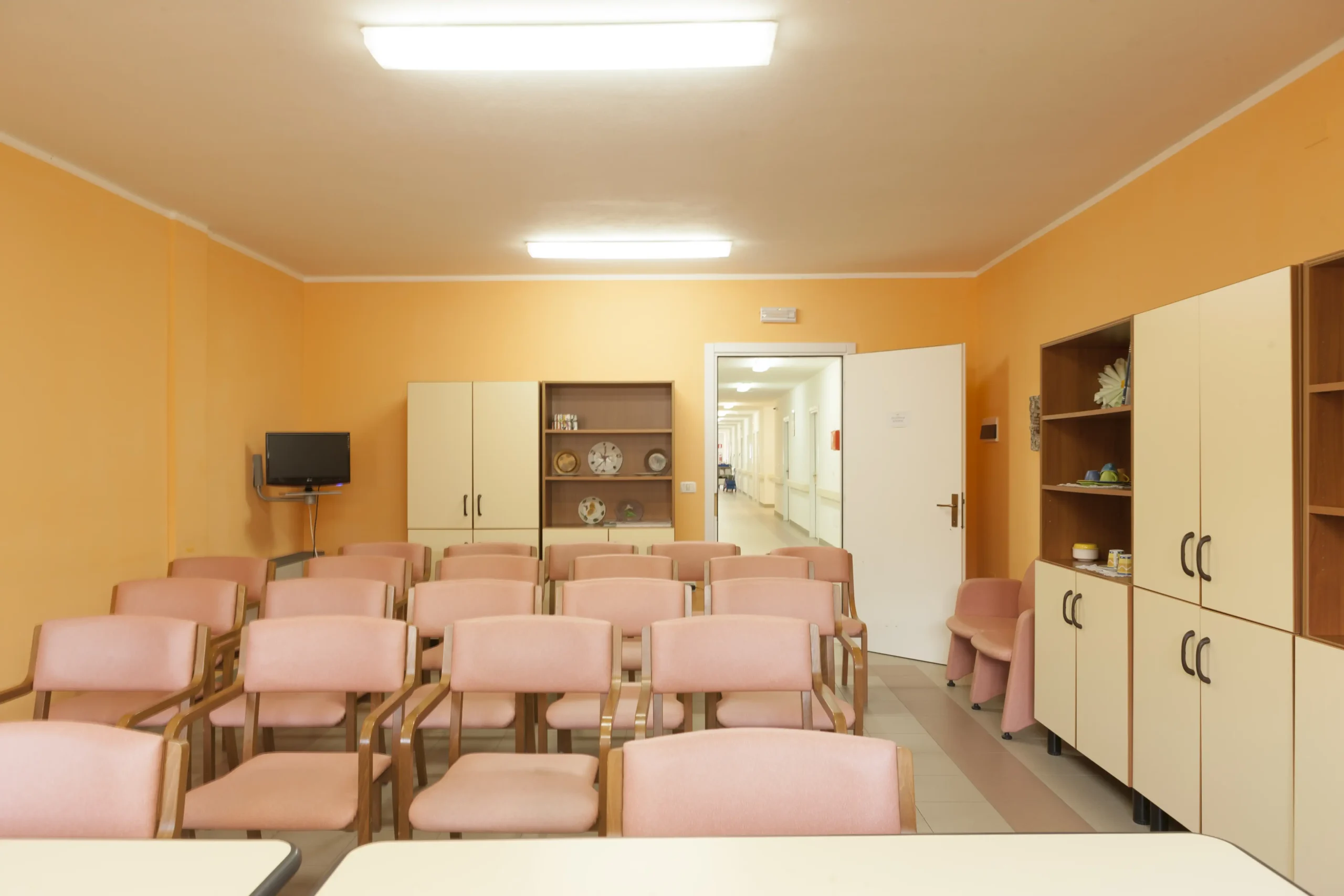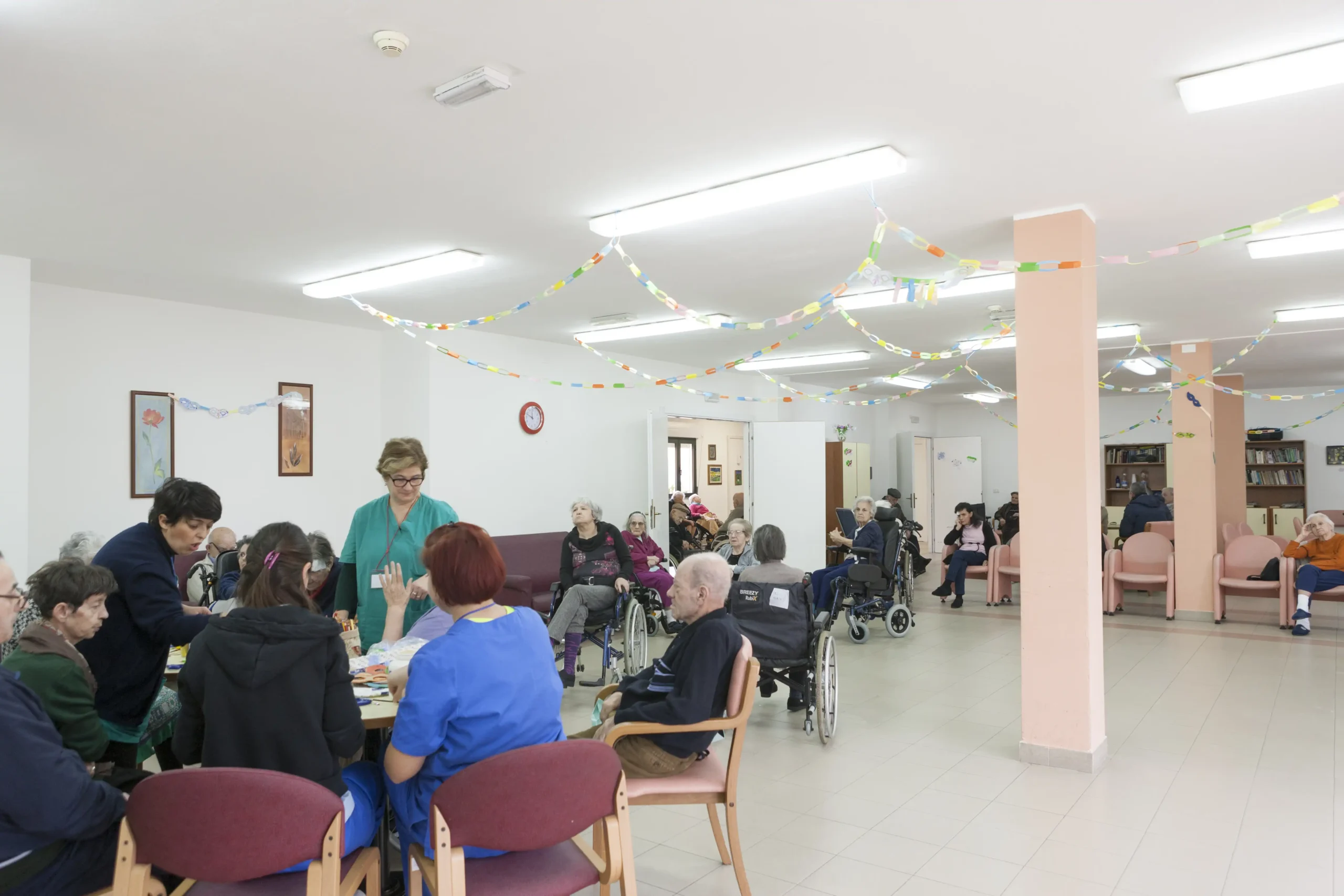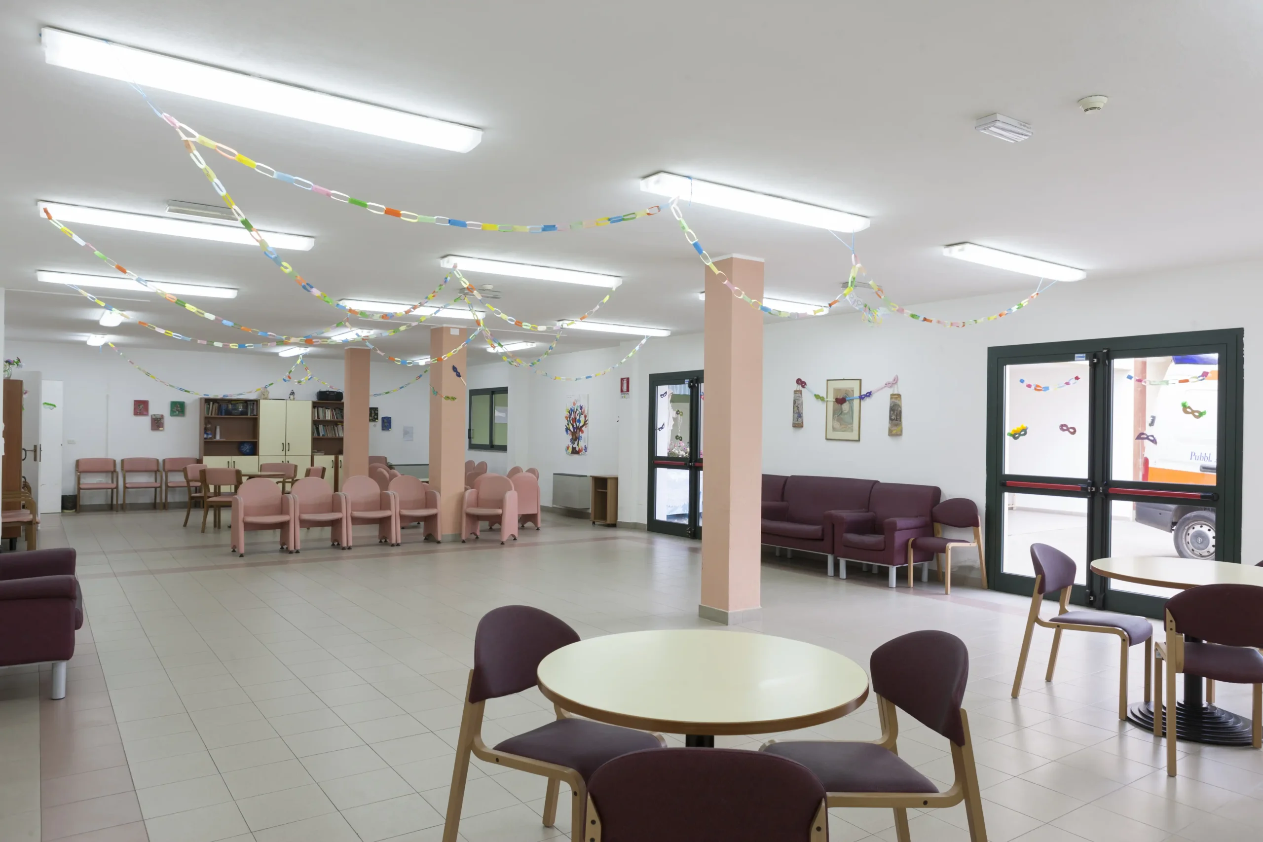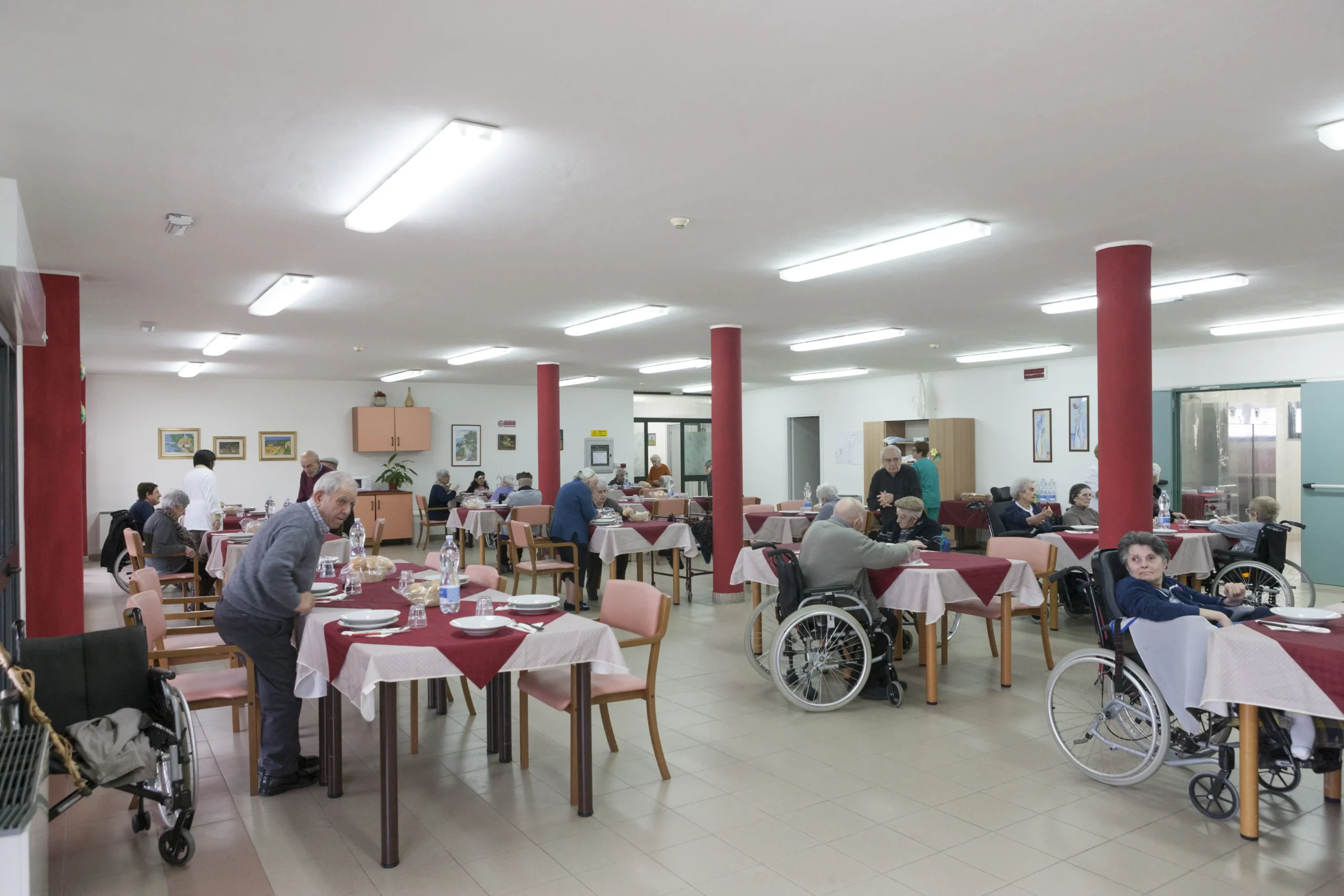 I residenti possono godere di spazi comuni confortevoli, giardino esterno e attività ricreative quotidiane. Il servizio include assistenza sanitaria, ristorazione con cucina interna e supporto nelle attività quotidiane.